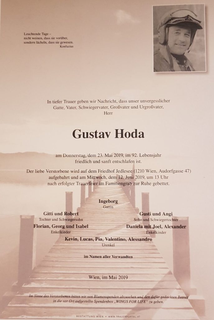 Liebe Enduro Senioren Austria Mitglieder! Leider hat uns unser Gründungsmitglied, Gustav Hoda Senior im 92. Lebensjahr für immer verlassen. Die Enduro Senioren, werden Gustav Hoda für immer ein ehrendes Gedenken bewahren. Mit aufrichtiger Anteilnahme, Der Vorstand
