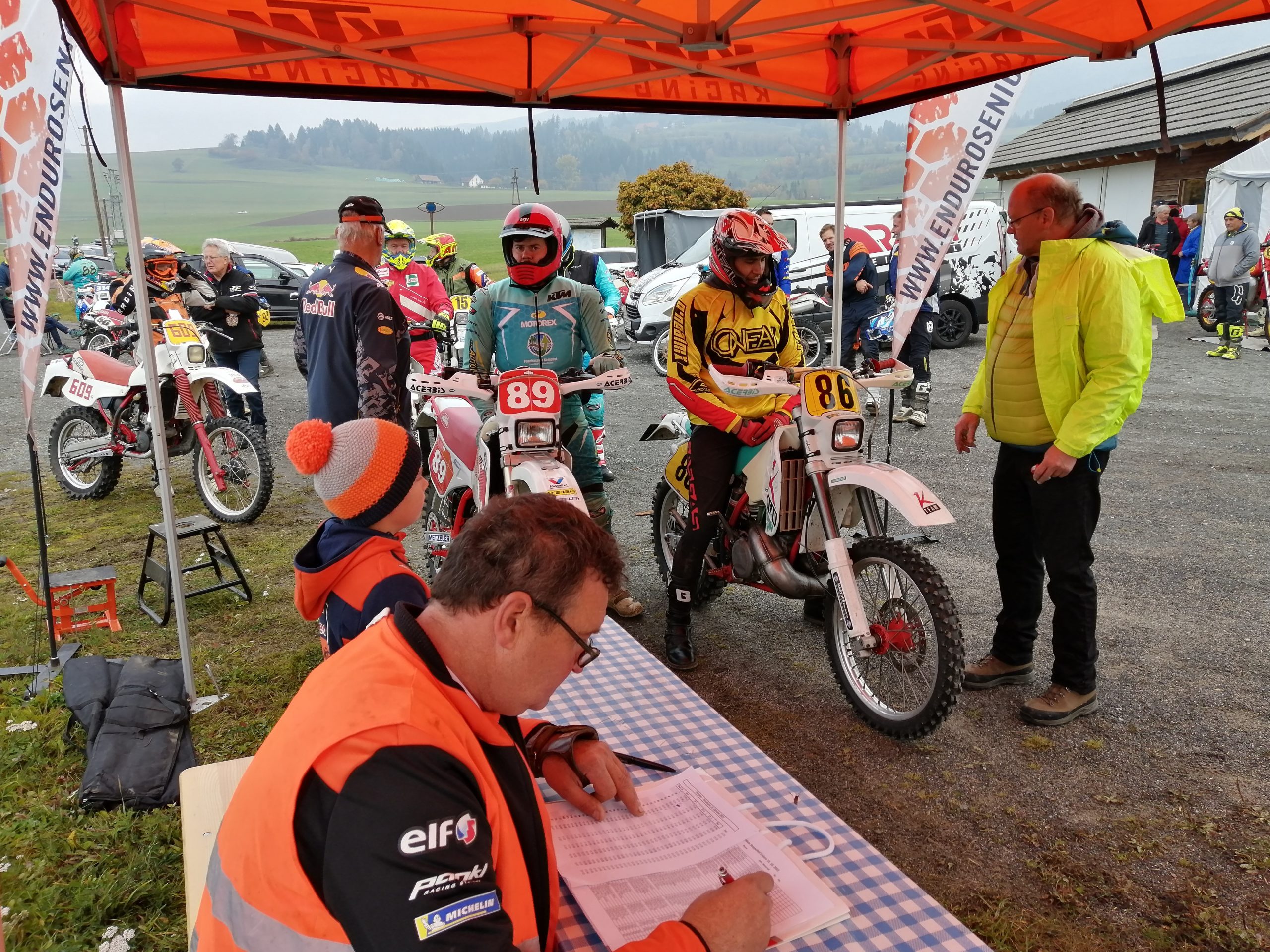 Unter den 50 Fahrern die ihre Nennung für dieses Stoppelfeld Enduro abgegeben haben befanden sich auch einige bekannte Neueinsteiger im Classic Enduro Sport. So brachte der KTM Österreich Geschäftsführer Chris Schipper eine  neu aufgebaute,  wie aus dem KTM Werk frisch ausgelieferte 250ccm 2 Takt KTM Baujahr 1992, an den Start. Mein Vater Ekkehard hat sehr viele Arbeitsstunden in dieses Motorrad investiert und vom Preis  bin ich fast bei einem neuen Motorrad, so Chris. Auch Peter Bachler der schon länger eine Teilnahme plante, hat es diesmal geschafft und startete in der 4 Takt Klasse auf seiner 600ccm Winkler – Husaberg Baujahr 1993 und beendete das Rennen gleich auf einem Stockerlplatz.